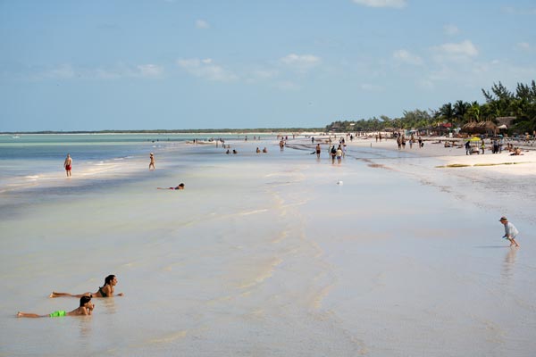 Beschreibung: Ein Sibirischer Husky wird im Lauf festgehalten, während er durch flaches Wasser am Strand spritzt. Der Ausdruck des Hundes ist wild und energiegeladen, was seine verspielte und abenteuerlustige Natur zeigt. Im Hintergrund sind verschwommene Ansichten des Ozeans und Holzpfeiler zu sehen.