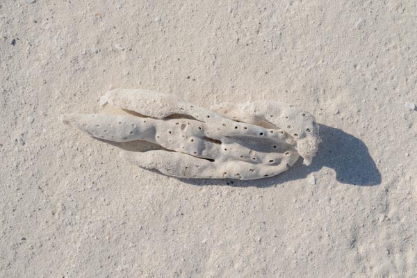 Nahaufnahme von Korallenfragmenten am Sandstrand